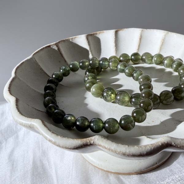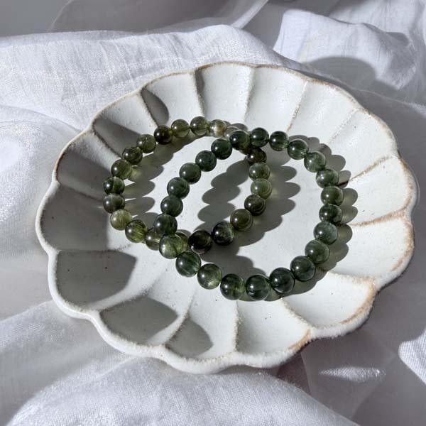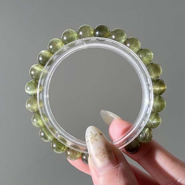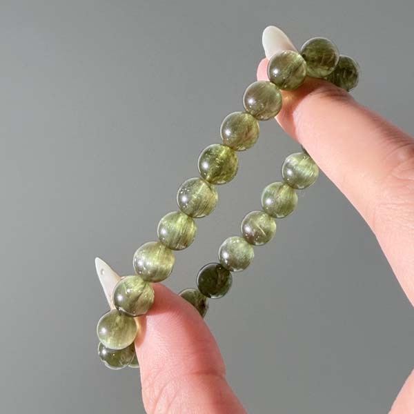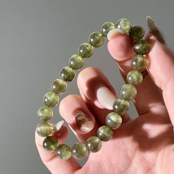 綠色會隨著貓眼的光游移而產生深淺變化