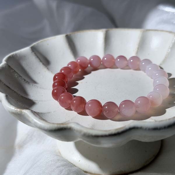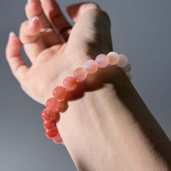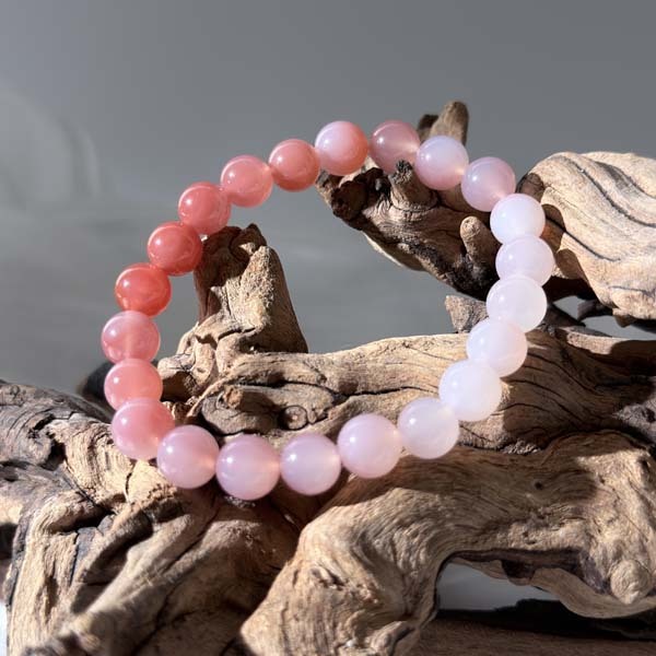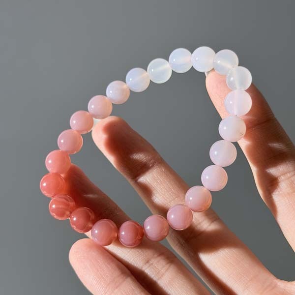 晶體呈現出極具層次感的蜜桃粉至霧白漸層