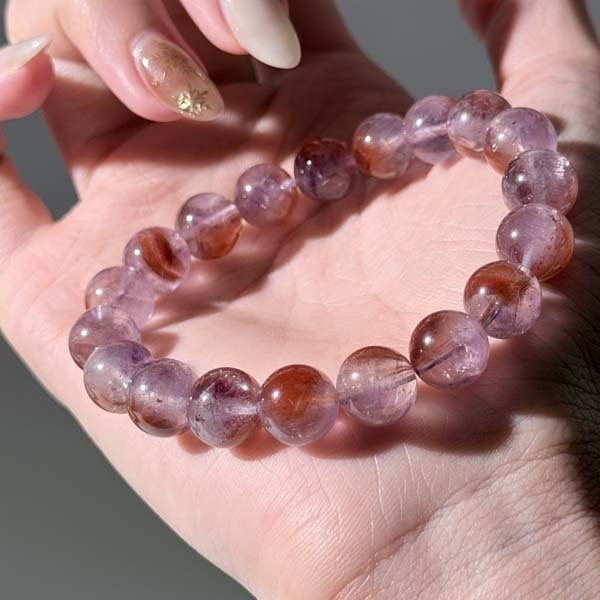 當光線穿過水晶時,內部的紅色礦物細節被清晰放大